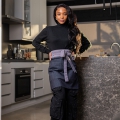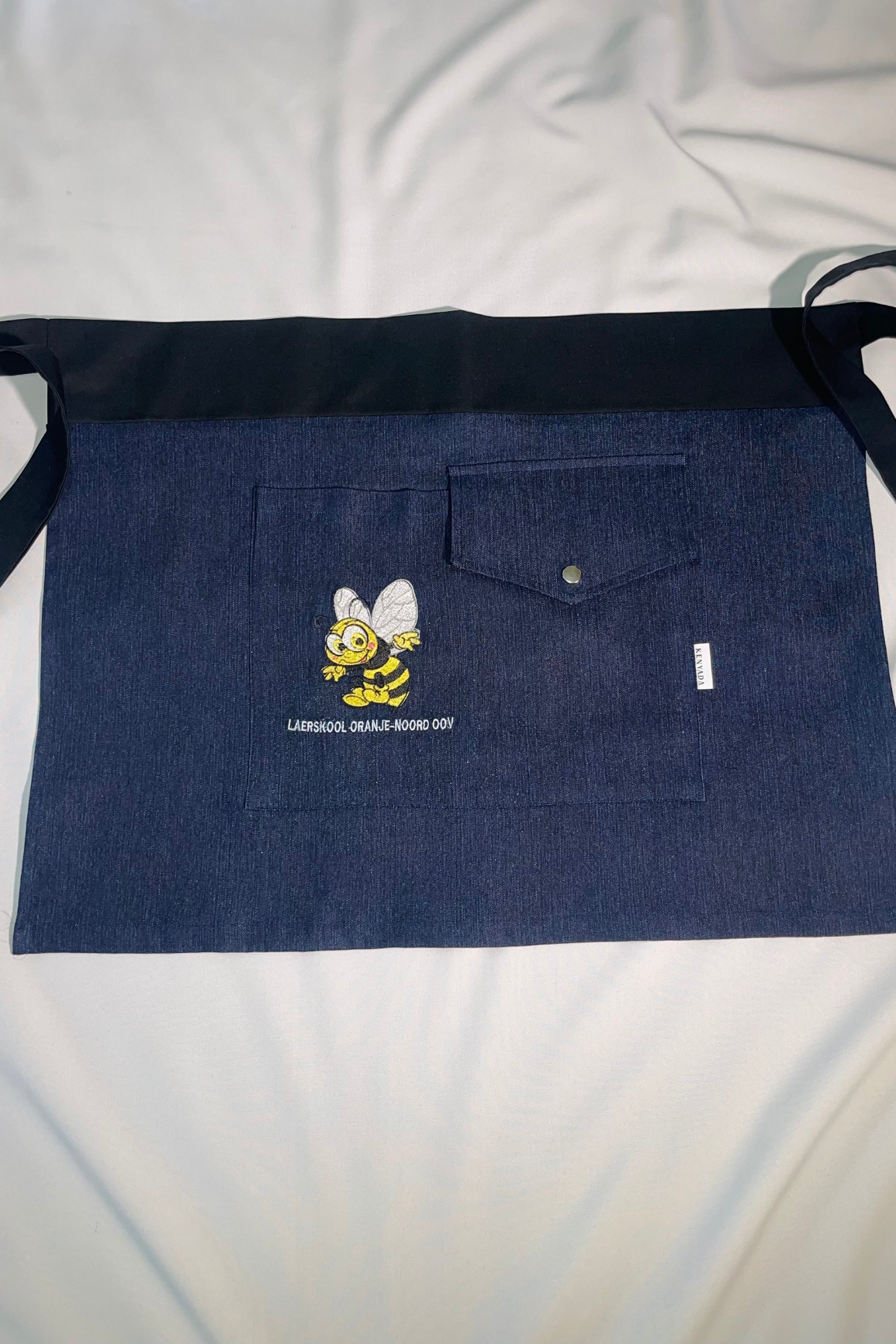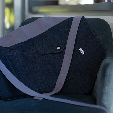 A functional, stylish & unisex contrasted denim Bistro apron with a centre divided dual front